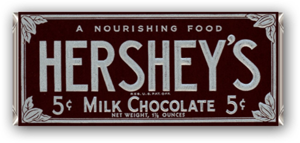 While Hershey may not have discovered milk chocolate, the Swiss are to be thanked for their contribution. He did, however, find a way to make it affordable, only $.05 and more readily available to the public. Additionally, Hershey’s was the first nationally marketed chocolate bar. Introduced in 1900, the Hershey Bar provided Milton Hershey the first of many of his creations. In the company’s first year, Hershey sold $1 million worth of chocolate. Two of Hershey’s other popular products created within the first ten years of switching from caramel to chocolate include the Hershey Kiss in 1907, which helped the company increase its profit to $2 million, and the Almond Joy in 1908.[3]